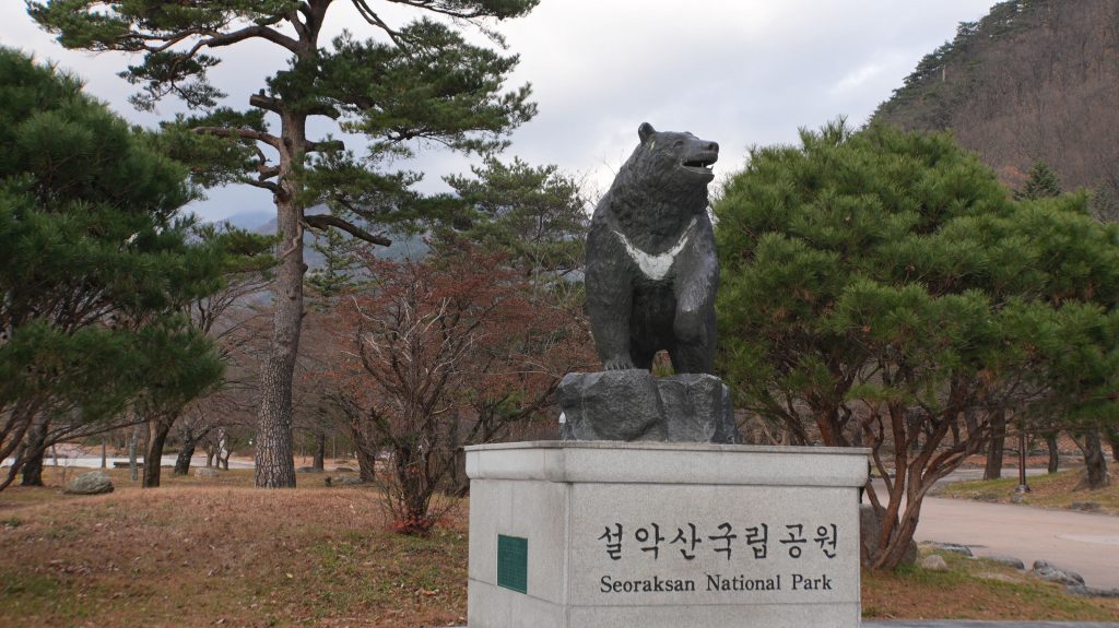 Per Taxi kommen wir wieder zum Eingang des Nationalparks und werden vom Bären begrüßt, und von der ostasiatischen Widersprüchlichkeit aus "Wir sind alle süß und putzig" und "Wir haben die mächtigste und prächtigste Armee der Welt".