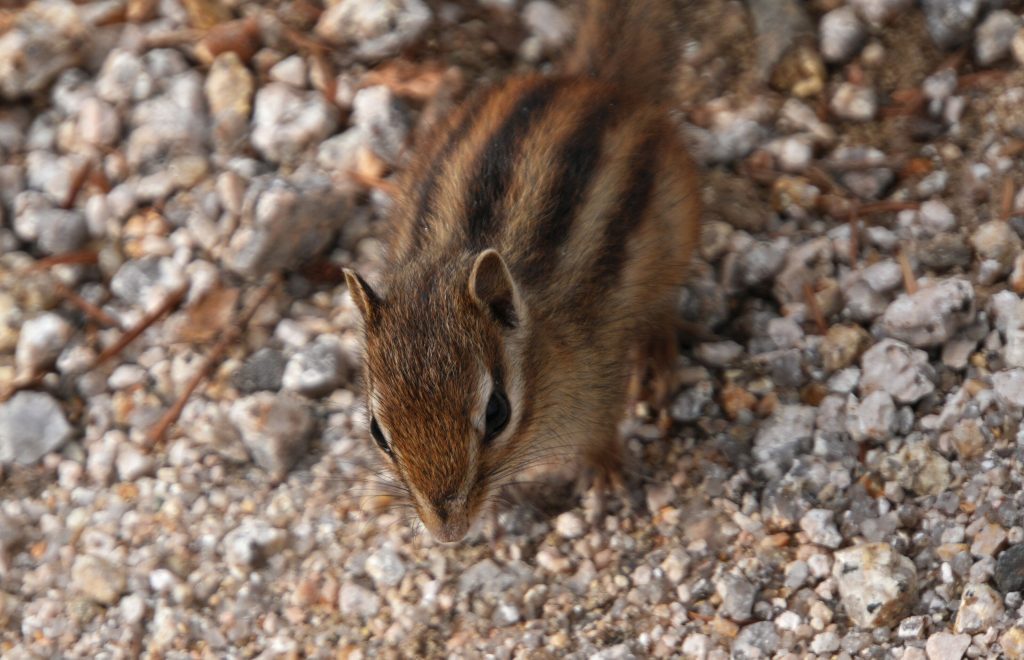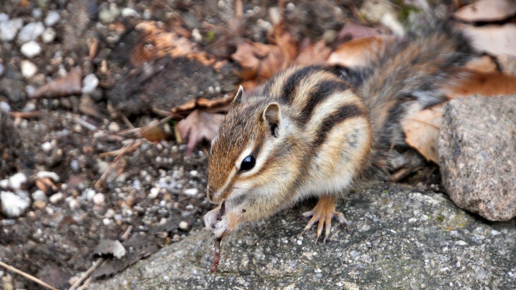 Das Zoll-Eichhörnchen ist immer noch da, ignoriert mich aber, denn es verzehrt gerade einen Leckerbissen: Frisch aus dem Boden gezogenen Regenwurm. Guten Appetit, mein Freund!