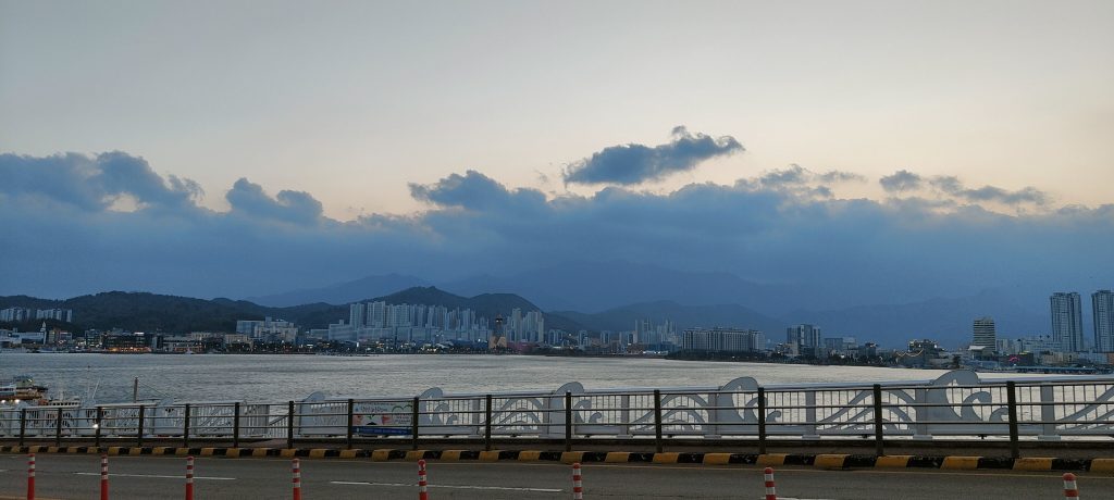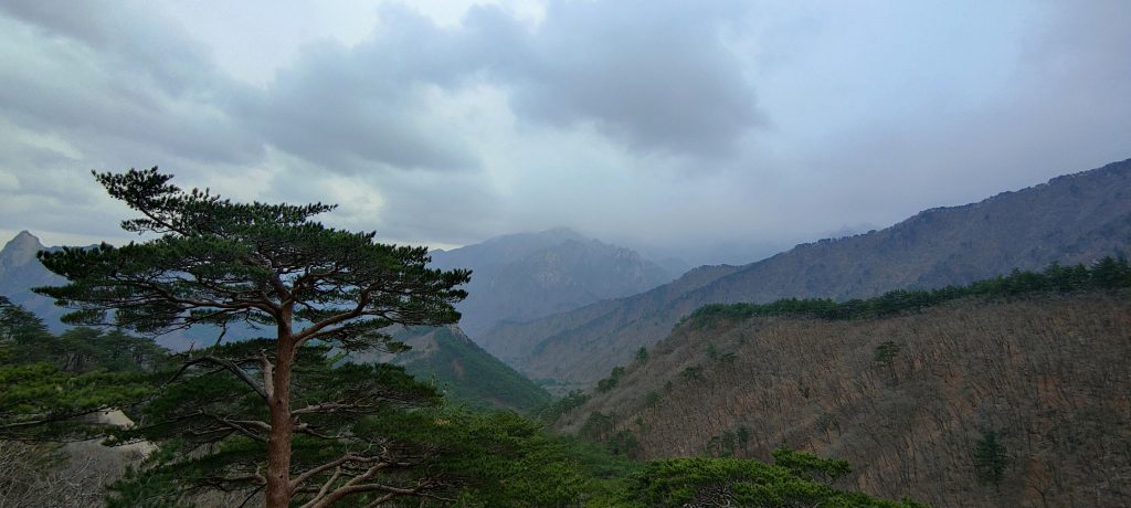 Eigentlich wollten wir heute zurück nach Seoul, aber der Park hat es uns sehr angetan, trotzdem er so arg touristisch ist. Die Berge sind wunderschön, und die Wanderung hat uns einfach nur glücklich gemacht. Der Wetterbericht sagt heute früh nur noch bewölkt, Regen soll es nicht geben. Ein Blick aus dem Fenster über das Meer bestätigt das, also gehe ich runter, um das Zimmer eine Nacht zu verlängern. Dummerweise ist niemand zu finden, und so buche ich einfach über die gute CHECK24-App eine weitere Nacht.