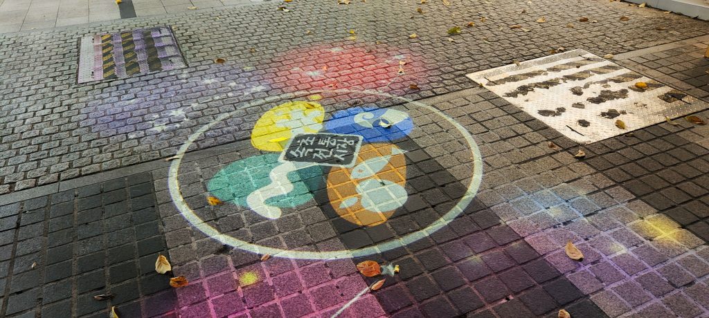 Interessant ist, dass hier nicht nur Werbung auf den Boden projiziert wird, wir haben im Süden des Landes sogar gebeamte Verkehrsschilder gesehen.