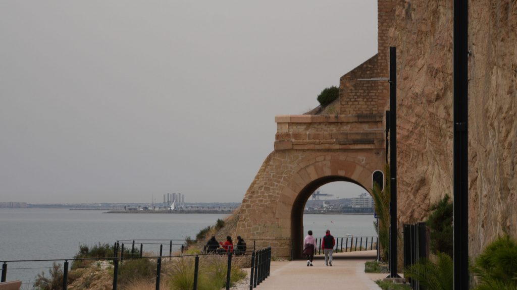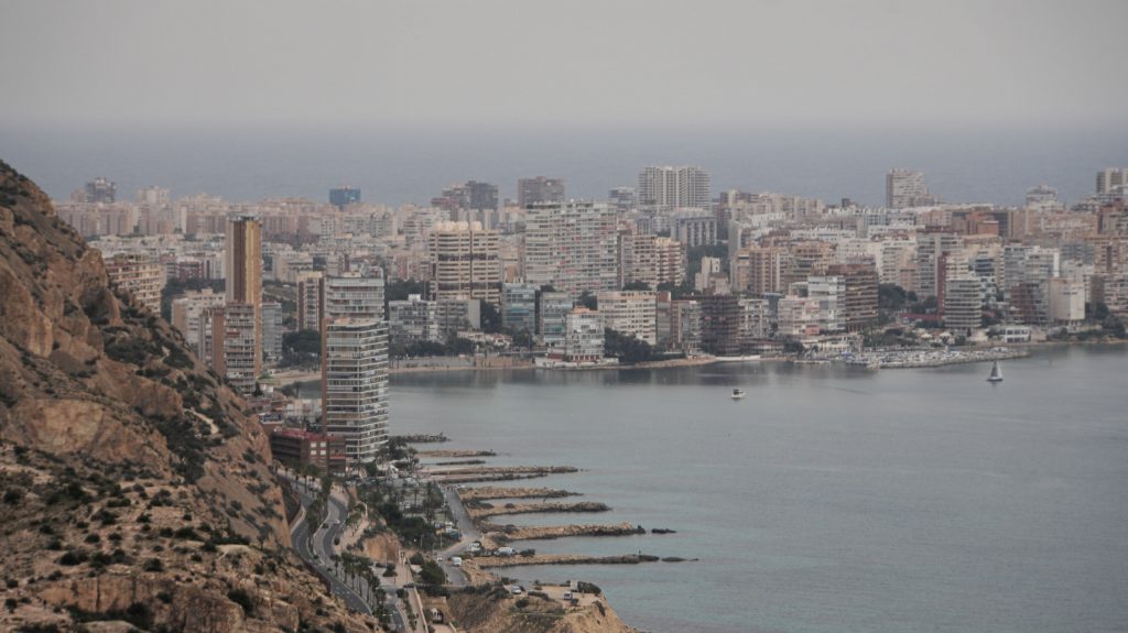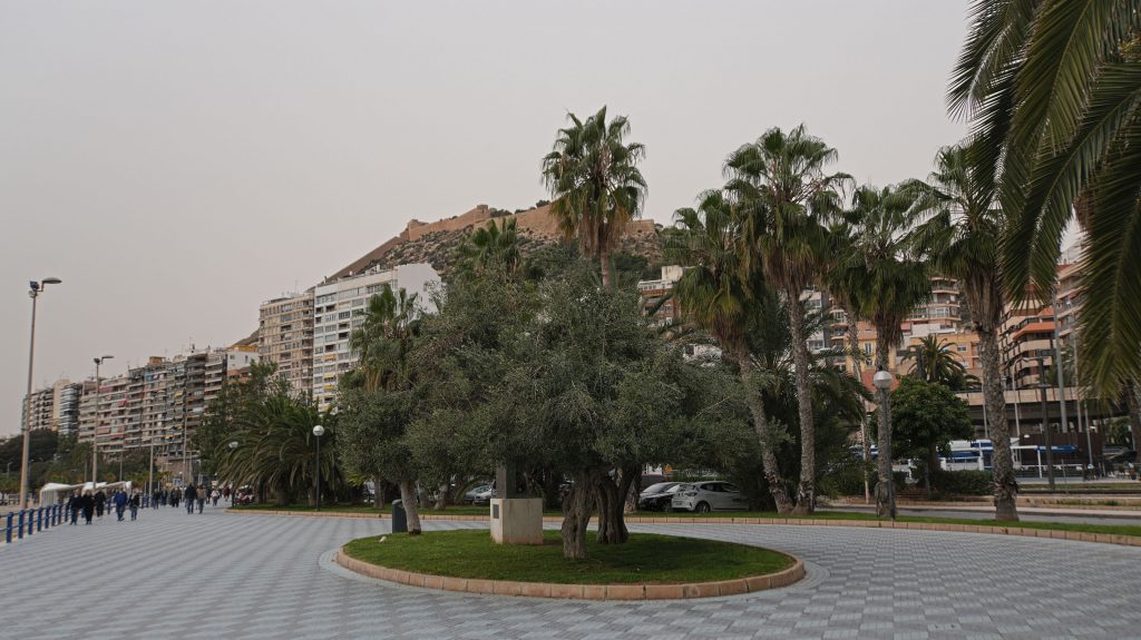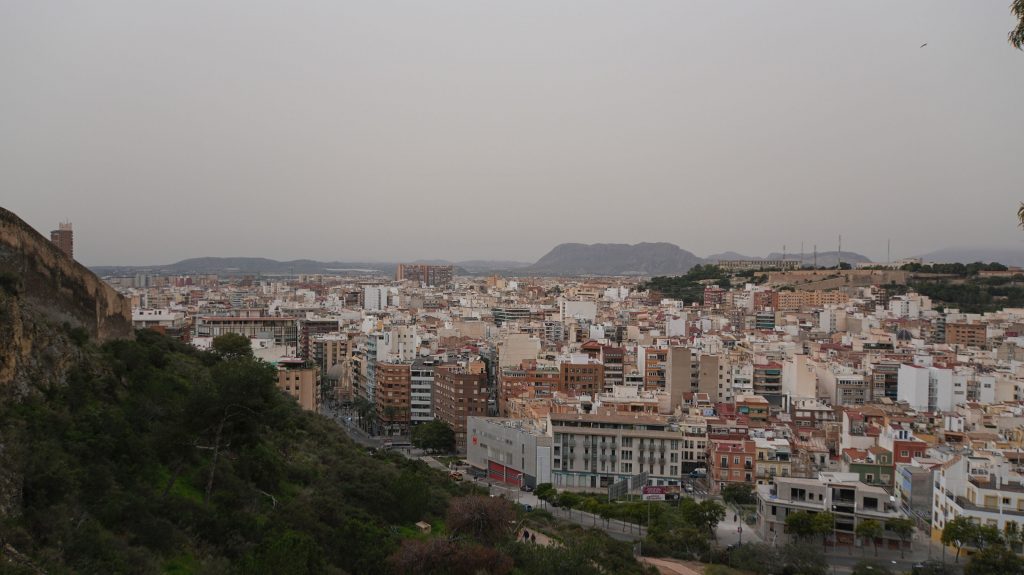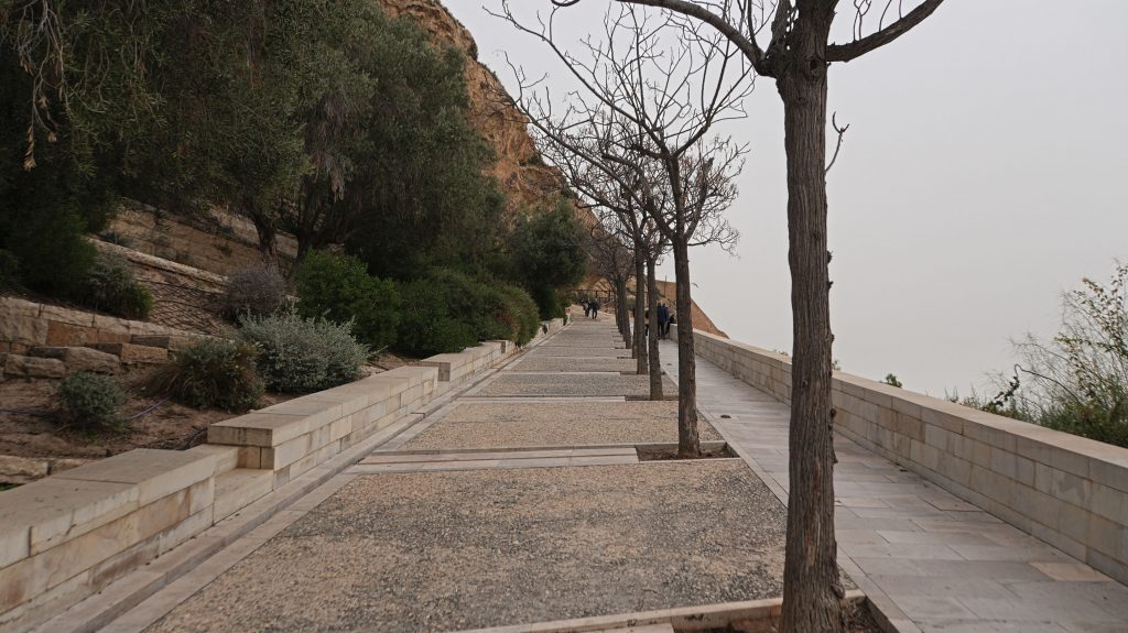 Von hier führt ein Weg den Berg hinauf, die Aussicht auf das zwischen die felsigen Hügel gezwängte Alicante wird immer besser.
