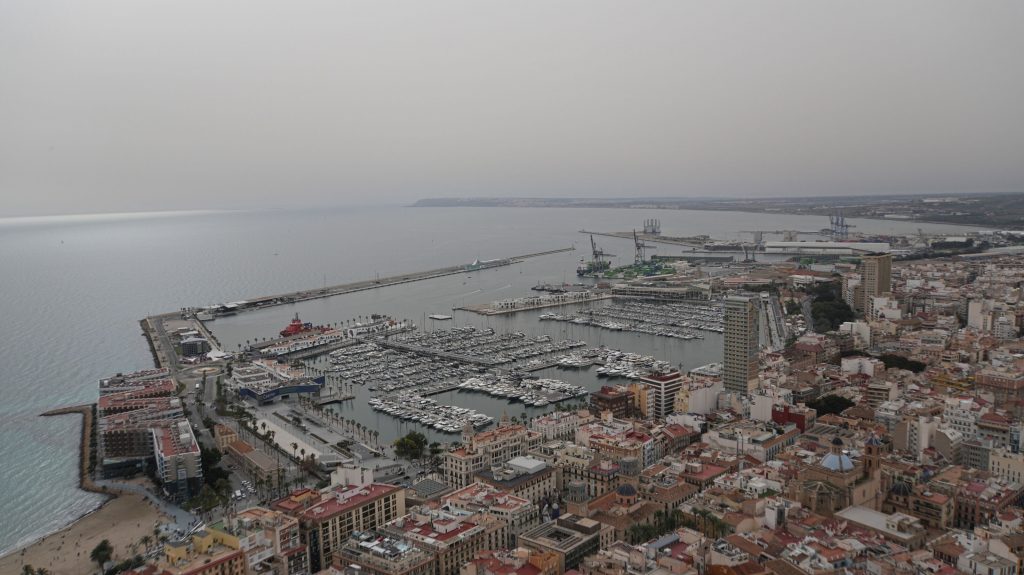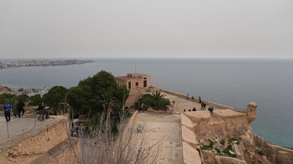 Auf dem Gipfel liegt das Castillo de Santa Bárbara, das seit über 1200 Jahren die Stadt beschützt. Von hier hat man eine schöne Aussicht über die Stadt, den Hafen, die Bucht, und man sieht sogar bis zu der 20 km entfernten Insel Tabarca. Die Insel ist lustig, keine 2 km lang, und die Ortschaft sogar nur 200 auf 400 Meter. Aktuell leben nur noch um die 50 Menschen dort, vor 100 Jahren war das ein Thunfisch-Fischer-Paradies. 1200 Menschen lebten kurzzeitig auf dem Inselchen, was eine Bevölkerungsdichte wie heute im Stadtzentrum von Großstädten ergibt – nur ohne Hochhäuser. Das muss ein ganz schönes Chaos gewesen sein!