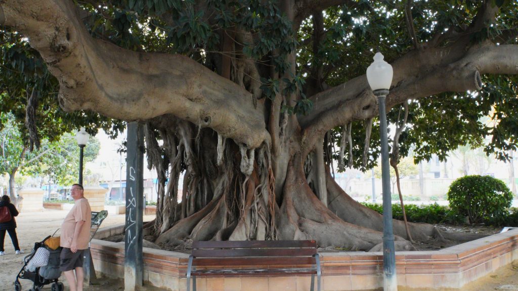 Wir laufen runter in die Innenstadt, und erfreuen uns an der schönen Vegetation hier. Besonders die massiven Feigenbäume, von denen hier in der Stadt etwa zwei Dutzend stehen, sind sehr beeindruckend. Nur die Pilze sehen ein wenig unecht aus.