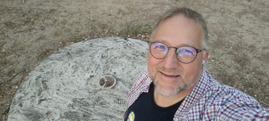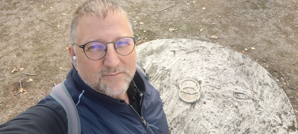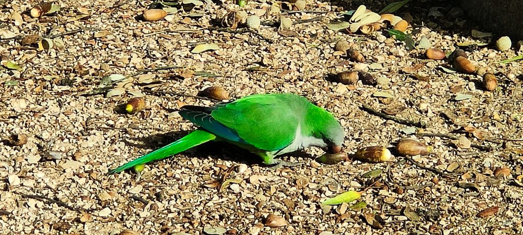 Bei schönstem Sonnenschein und flottem Schritt komme ich trotz herbstlicher Temperaturen schnell ins Schwitzen. Mein Ziel ist im Osten, aber es geht erst einmal 4 km Richtung Westen durch den riesigen Park. Die putzigen Mönchssittiche freuen sich über die zahlreichen Eicheln und sind so mit Futtern beschäftigt, dass ich sogar mit dem Handy tatsächlich ein paar Fotos hinbekomme.