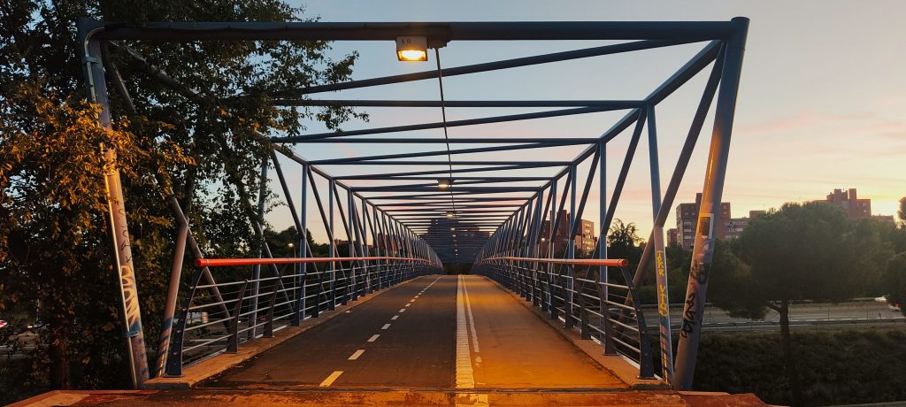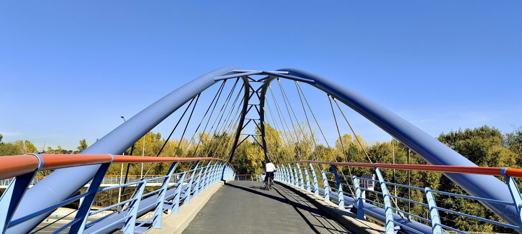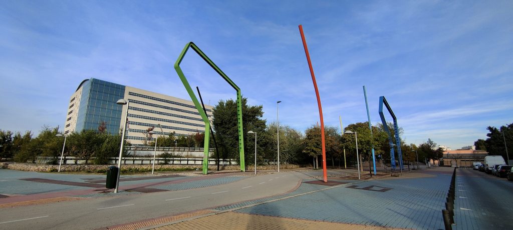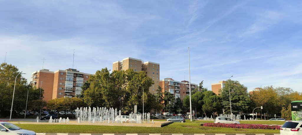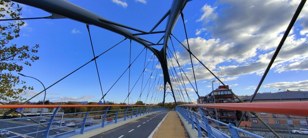 Ich durchquere Hortaleza entlang der M-30, und halte für ein Mittagessen in einer Bar. Zu meinem Essen gibt es ein Glas Vermú, der ganz schön reinhaut. Leicht beschwipst geht es über die orange-blaue Brücke nach San Blas Canillejas, wo ich ehe ich mich versehe schon die ersten 10 km abhake.