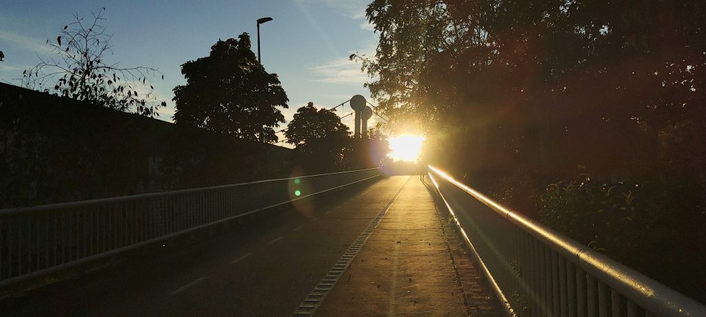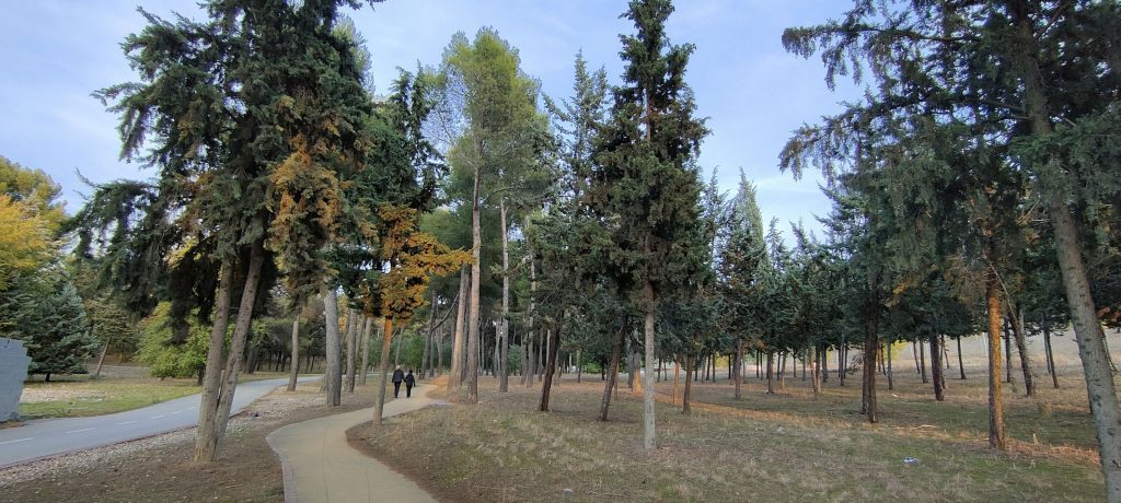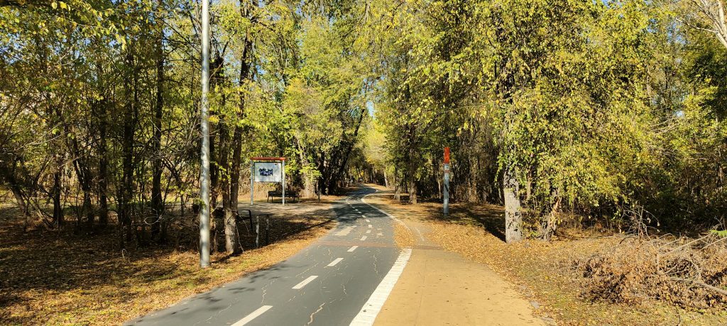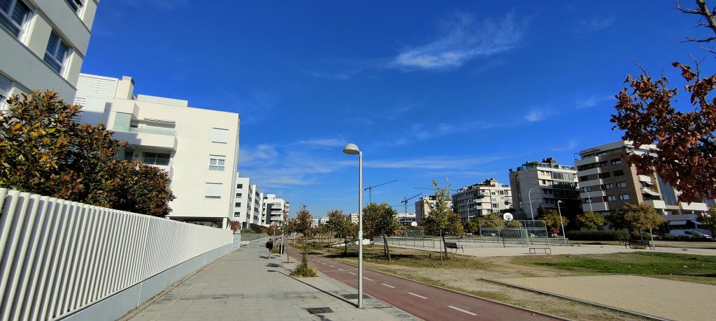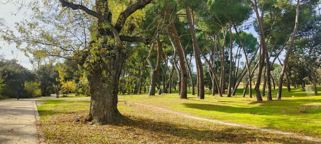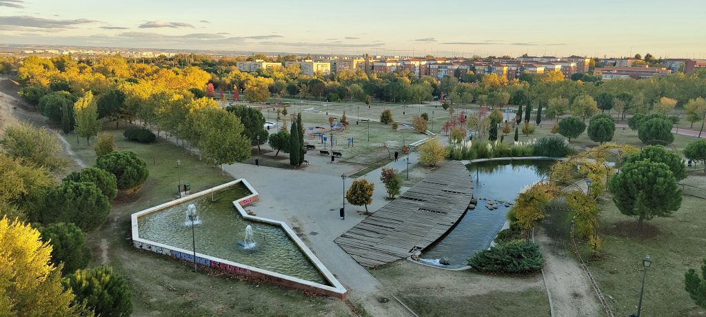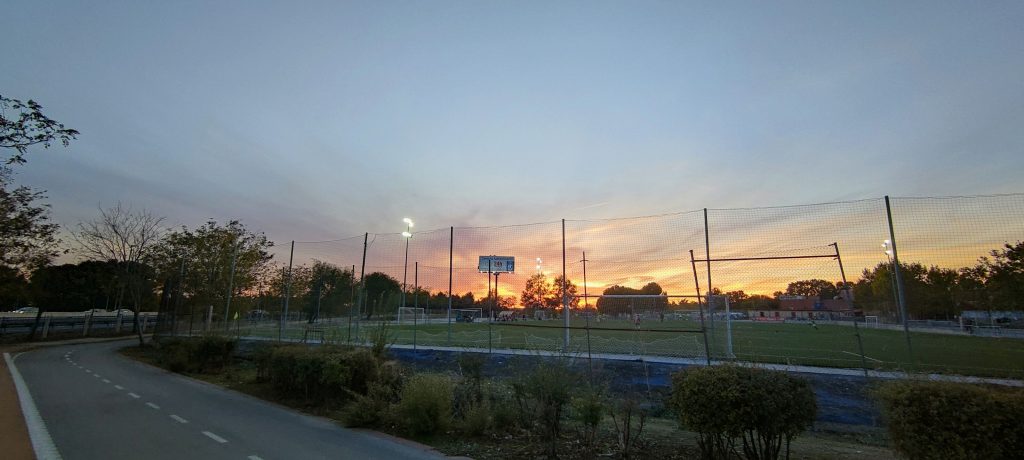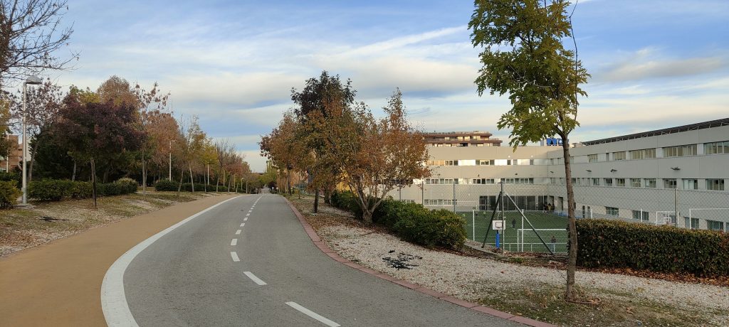 Jahreszeitbedingt wird es schon früh dunkel, als ich die R-3 überquere bin ich von der untergehenden Sonne sehr geblendet. Ich verlasse den Anillo Verde erneut kurzzeitig, um auf der Außenseite der M-40 ein bisschen durch den Park zu laufen.