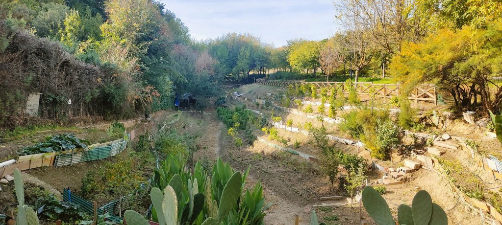 In Aluche dreht der Radweg dann um, und es geht entlang eines Stadtparks Richtung Südosten. In einer wilderen Ecke hat ein Aussteiger eine Hütte im Park und einen schönen Garten gepflanzt – sehr schön! Nach der Verspätung habe ich bald Hunger, zum Mittag gibt es Paella und Chopitos, und es war so lecker wie es klingt.