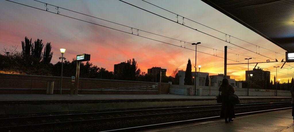 Am nächsten Morgen fahre ich wieder in die Stadt, und mache mir mehr Gedanken um den Rückweg. Der zentrale Bahnhof Nuevos Ministerios bietet sich als Startpunkt an, von hier geht eine S-Bahn (Cercanías) nach El Pozo, und vom geplanten Endpunkt geht eine Metro direkt zurück. Dafür ist Parken selbst mit E-Auto schwierig, und so gibt es ein paar Extraschritte bis ich bei der S-Bahn ankomme.