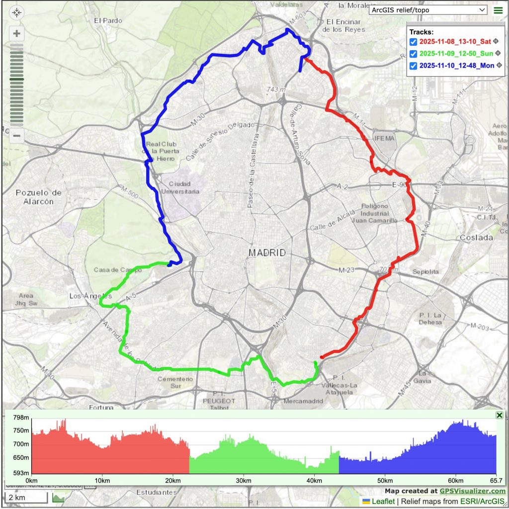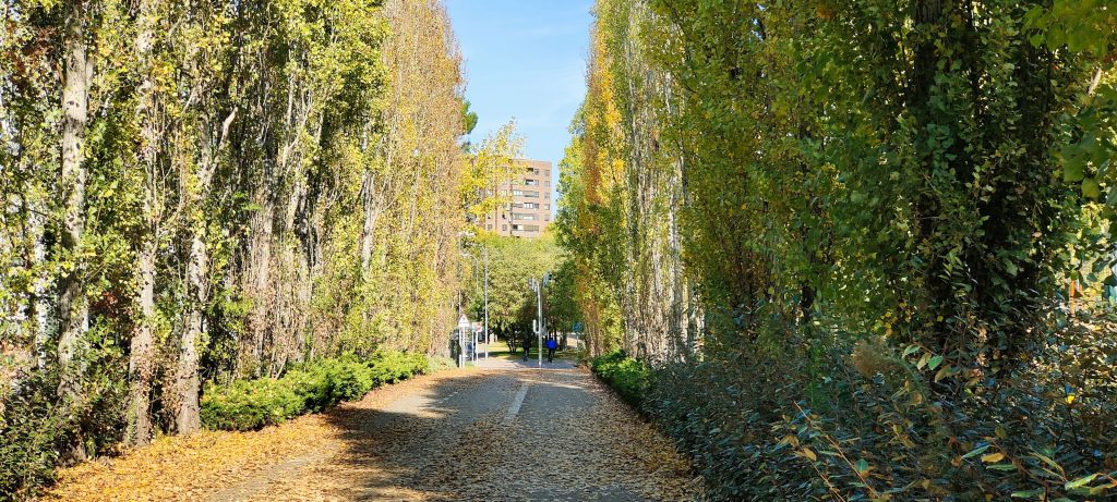 Durch den Stadtteil Carabanchel wird es deutlich urbaner, es geht neben der großen Straße her, aber wenigstens ist es weitläufig und schön hergerichtet. Durch die Umkehr der Etappe ist es verwirrend, aber als ich bei km 30 bin, bin ich mir ziemlich sicher, dass ich jetzt schon mehr als die Hälfte der Strecke geschafft habe.