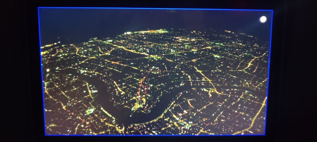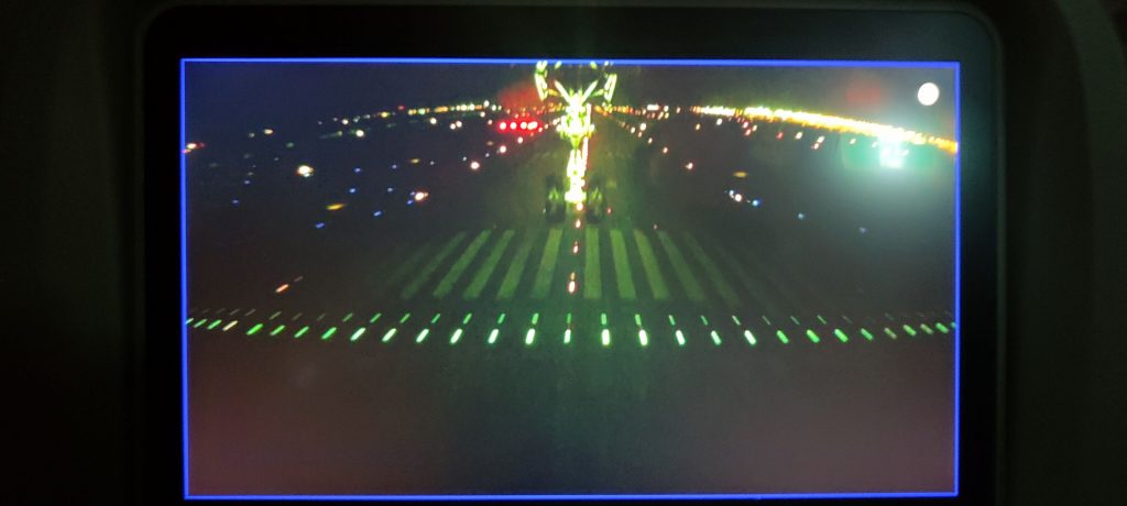Wir begeben uns auf die lange Reise in den äußersten Osten des Kontinents, um meinen Stiefsohn in seinem Auslandssemester in Seoul zu besuchen. Der Flug startet Vormittags, und weil wir nach Osten der Sonne entgegen fliegen, ist es schon nach weniger als halber Strecke Nacht. Das ist schade, denn obwohl wir keinen Fensterplatz haben, kann man nach draußen sehen: China Eastern hat in das Flugzeug 3 Kameras verbaut (von hinten auf das Flugzeug, nach unten und nach vorne), und die kann man im Bildschirm anschauen. Sehr schönes Feature! Nur halt die meiste Zeit schwarz auf schwarz.