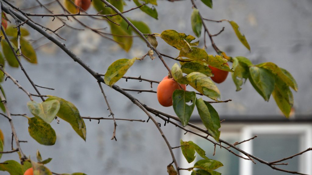 Mehrmals sehen wir auch Kaki-Bäume, die dicke Früchte tragen, das erinnert an andalusische Städte mit ihren Orangen-Alleen.