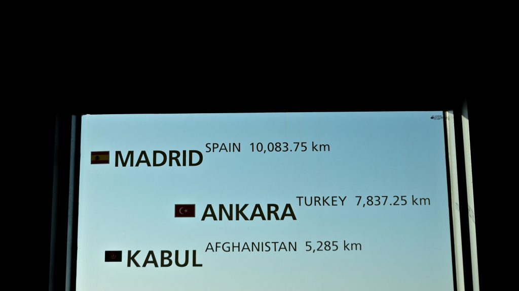 Im Tower sind an den Panoramafenstern die Entfernungen zu anderen Städten markiert, ich habe mal willkürlich ein Fenster ausgewählt.
