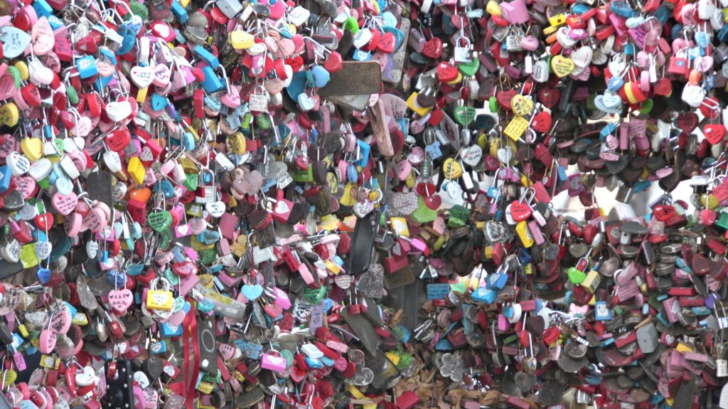 Wieder unten am Gipfel des Namsan ist eine riesige Ansammlung von Liebesschlössern, jeder vermarktbare Trend wird hier zelebriert ;-).