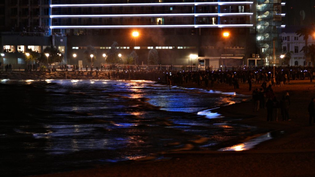 Kurz vor Jahreswechsel wechseln wir zum Strand "Playa del Postiguet" rüber, wo ein paar wenige Feuerwerker Böller und Raketen schießen.