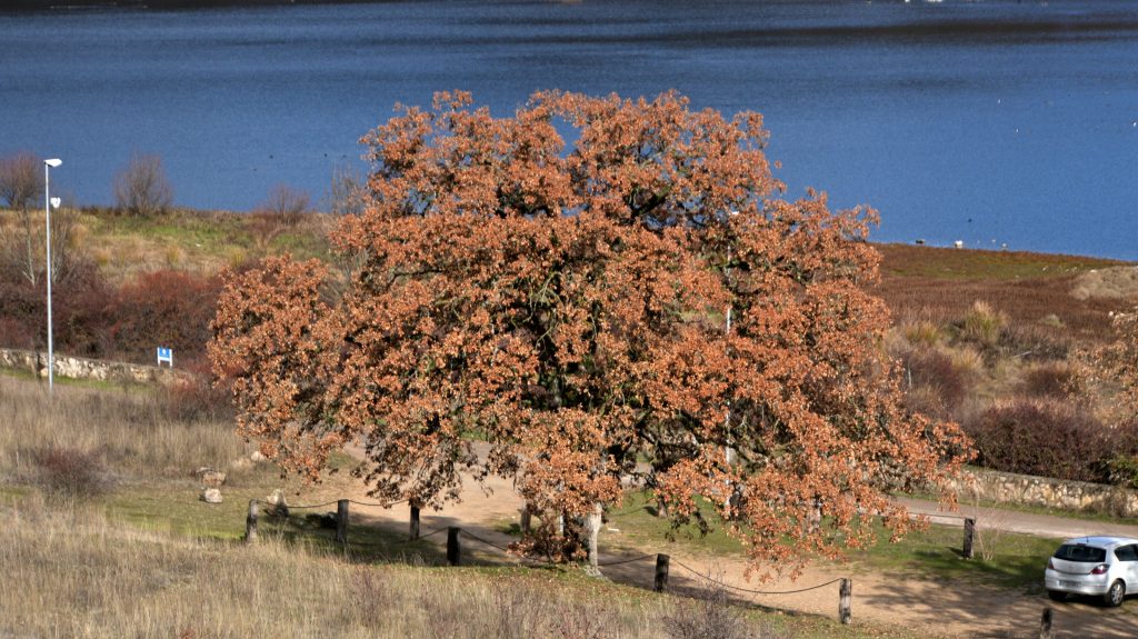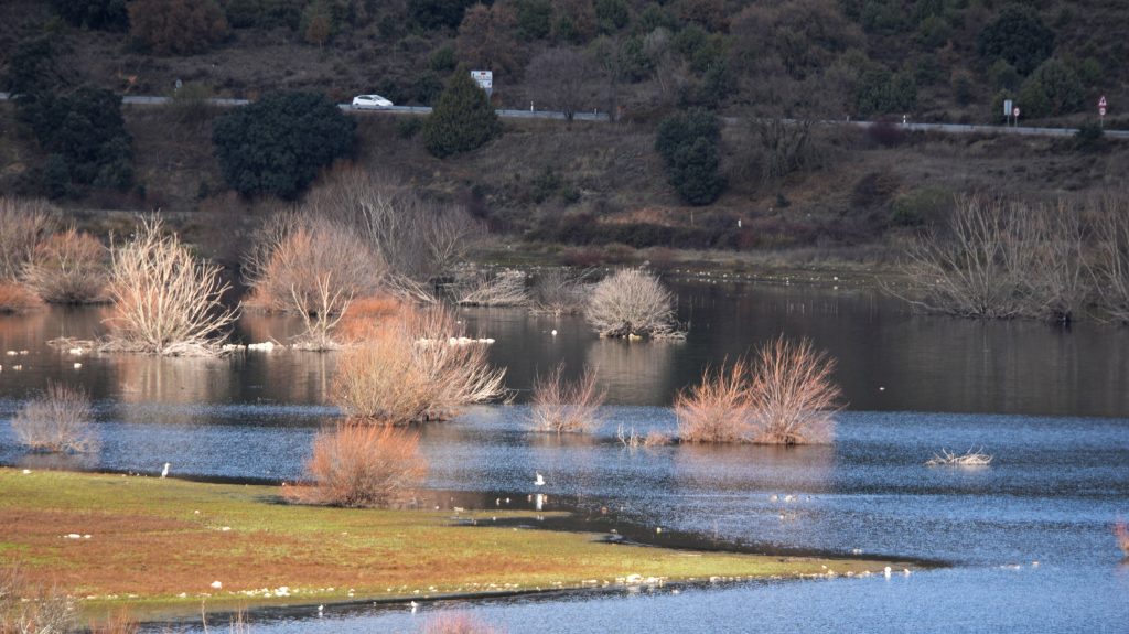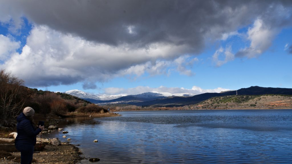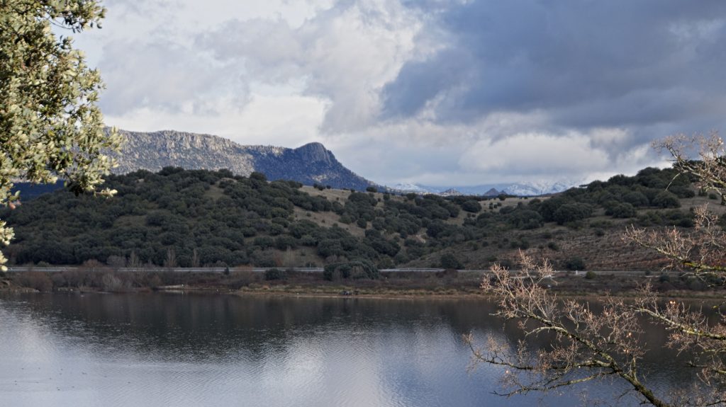 Heute machen wir eine kleine Wanderung an unserem Stausee Embalse de Pedrezuela vor schneebedeckten Bergen. Wir starten in Guadalix de la Sierra, einem Nachbarort am Oberlauf des 'Erlenbaches' Guadalix. Der Ort ist noch einmal deutlich ruraler als bei uns, Pferde und Kühe, Schafe und Ziegen werden hier gehalten. Landwirtschaft mit Getreidefeldern gibt es ja rund um Madrid nicht in großem Stil, weil in der langen trockenen Sommerzeit nichts überleben würde.
